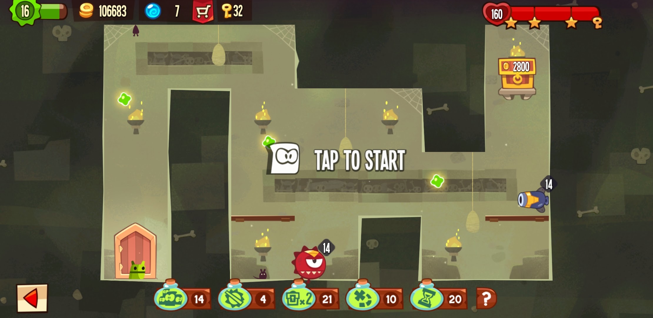 The basic concept of the game is that you play as a little blocky rogue character who has just escaped from prison and must now make his way back up the ranks as the best thief in the land. Doing so comes in two different parts between offense and defense. Playing offense puts you in a small auto-run level where as soon as you start your character starts moving to the right. You can then tap to jump and tap again when jumping against a wall to wall jump which will make your character go the other direction. The goal is to get from the starting point of the level to a treasure chest nearby while dodging traps and obstacles in the way. By reaching the chest you get the chance to gain money which can be used to buy upgrades, and gems which have a point value that raise your thief score. The goal of the game is to raise your thief score to move up the leaderboards and if you make it to the top of your bracket before the tournament ends you move up to the next bracket eventually working your way to gaining the King of Thieves throne.
