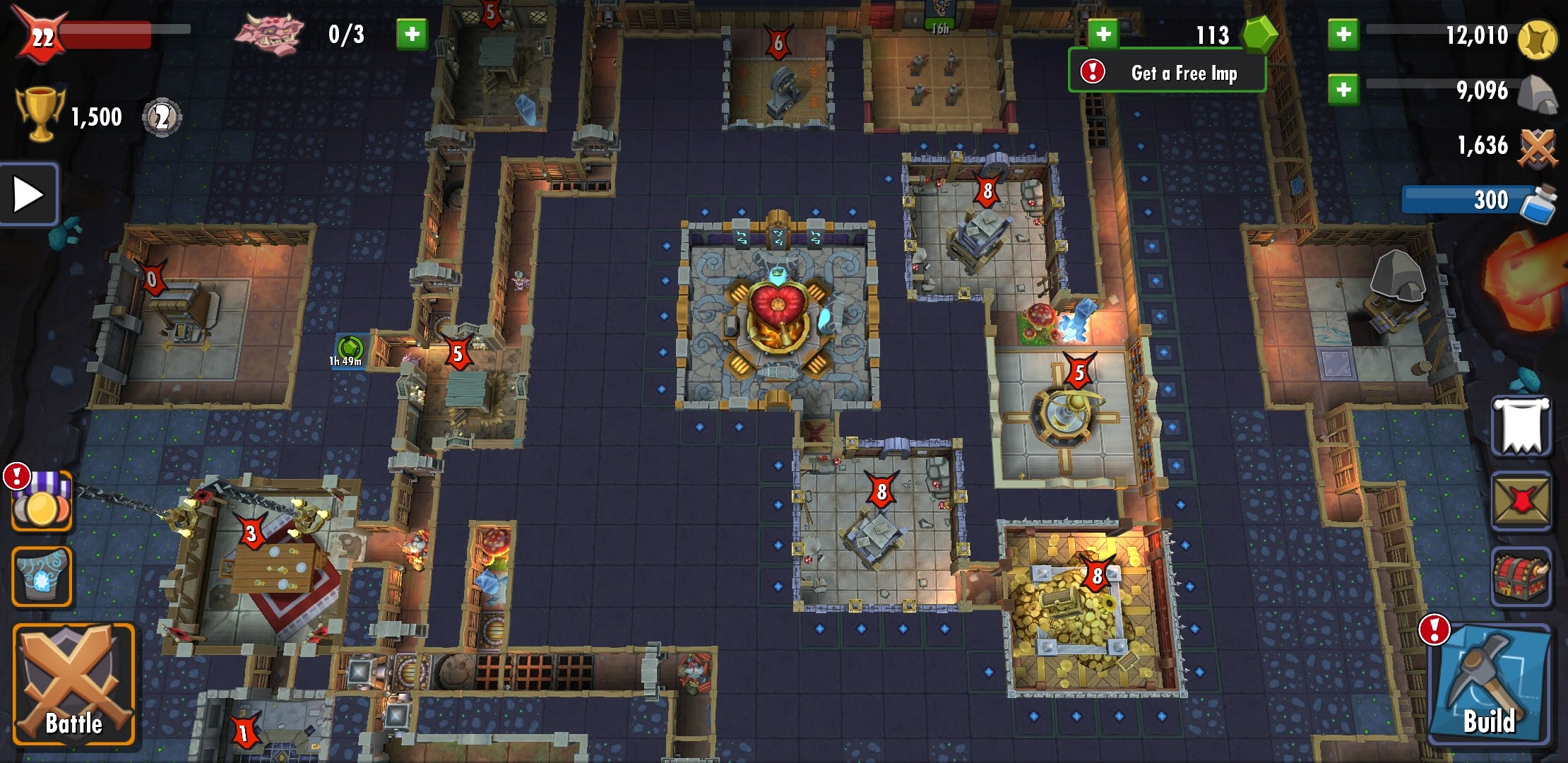 Some of the most popular mobile games are tower defense and city builders. Dungeon Keeper by Mythic Entertainment (a company that specializes in MMO games), is a game that combines the two genres in a very interesting way. Based on the Dungeon Keeper series of PC games developed by Bullfrog Productions (Both Bullfrog and Mythic being partnered with Electronic Arts) in 1997, the Dungeon Keeper mobile game is a city builder in which you create an underground dungeon city for minions and monsters. In the original PC game, the focus on top of building your dungeon was to attack CPU dungeon keepers and defend your base from random hero attacks. Now in the mobile game, other players take the role of the other Dungeon Keepers.