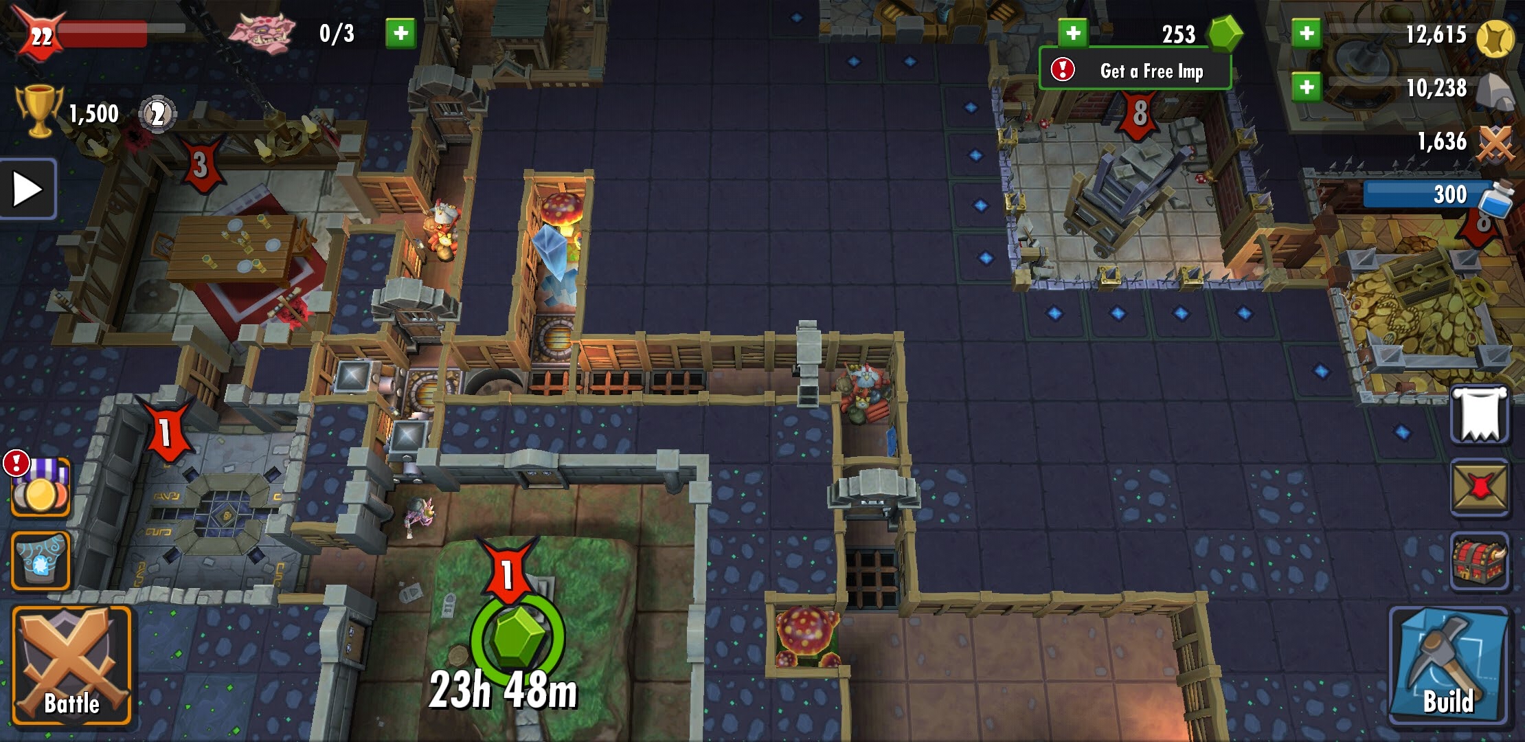 There are two ultimate goals in Dungeon Keeper which is to either get through all of the story missions, or to climb to the top of the leaderboards. Personally I’d recommend a focus on story missions, as there will always be someone with more money or more time who can easily climb the leaderboards without much effort (pay-to-win always ruins good games). I’d also highly recommend playing the game with volume on, as your advisor in the game (whose name will be stricken from the record of this review) often gives some humorous banter depending on what you’re doing.