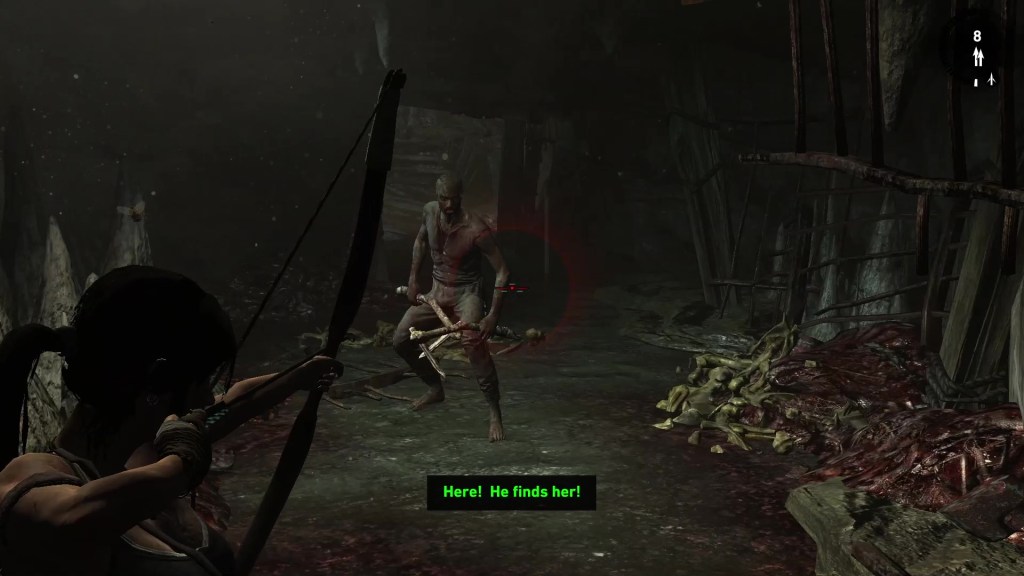 Based on the name of the section, I kind of assumed it would be a short one. I did get a little bit worried when they lit the hay around Sam, but I expected Roth or Grim to burst in to save them. The fact that they took Lara’s weapons and I was left with a bow was no issue for me since it was already my favorite weapon to use. I do have to give a lot of respect for Lara though in doing whatever she has to in order to survive, even jumping into a pool of possibly diseased blood. Eugh.